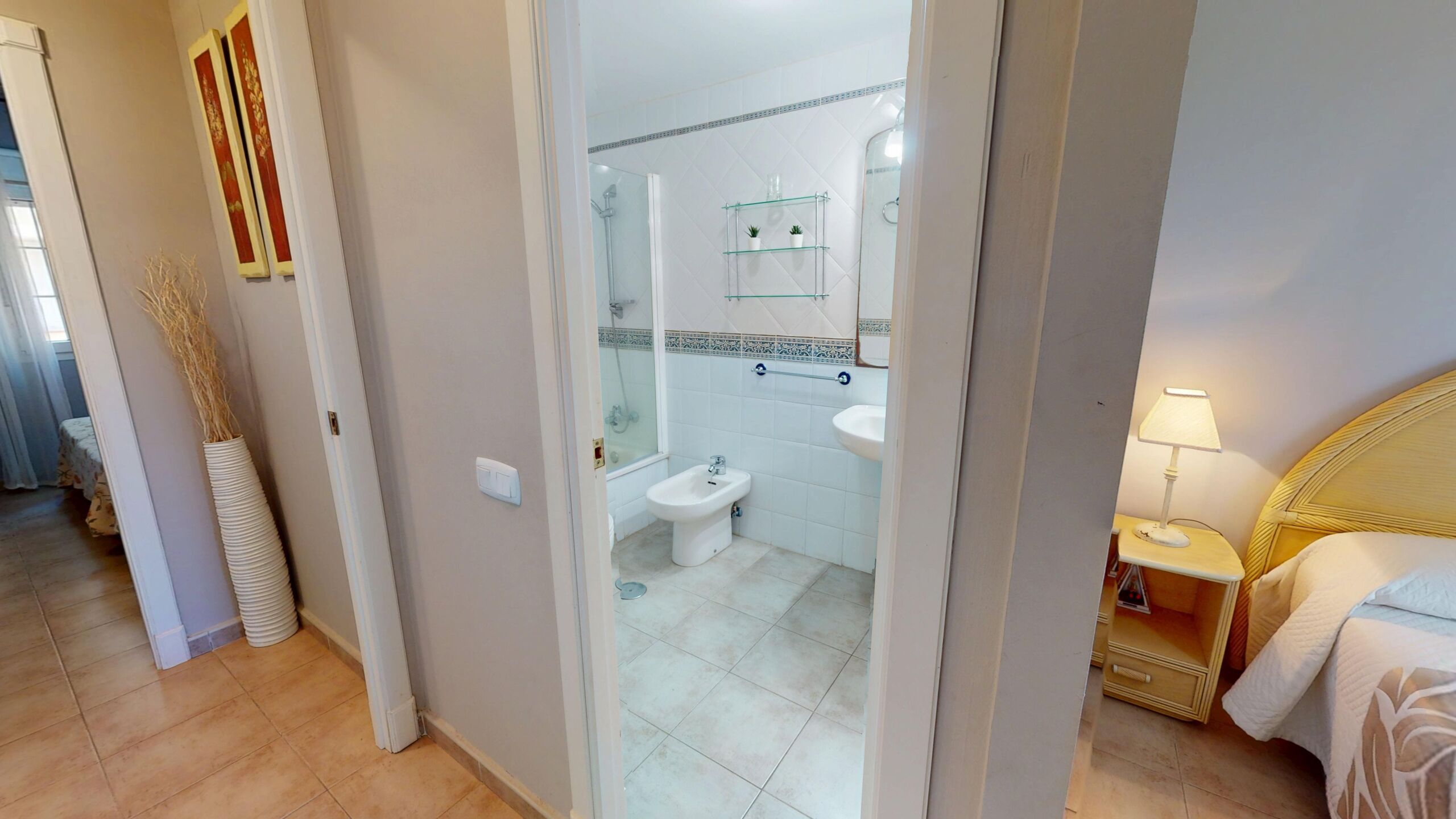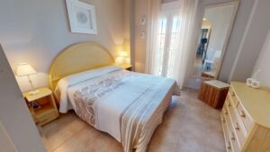 Dos dormitorios exteriores bañados de luz, pensados para el descanso y el confort junto al mar. La amplitud, los armarios empotrados y la atmósfera tranquila de la vivienda crean un espacio acogedor ideal para disfrutar en vacaciones o durante todo el año.