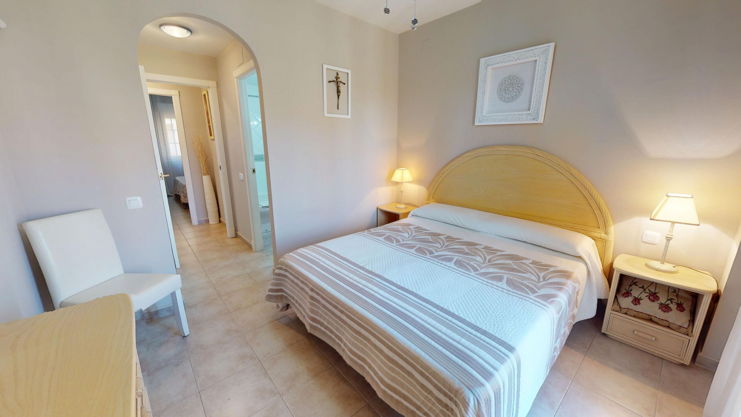 • Dos dormitorios acogedores y luminosos, pensados para el descanso junto al mar.